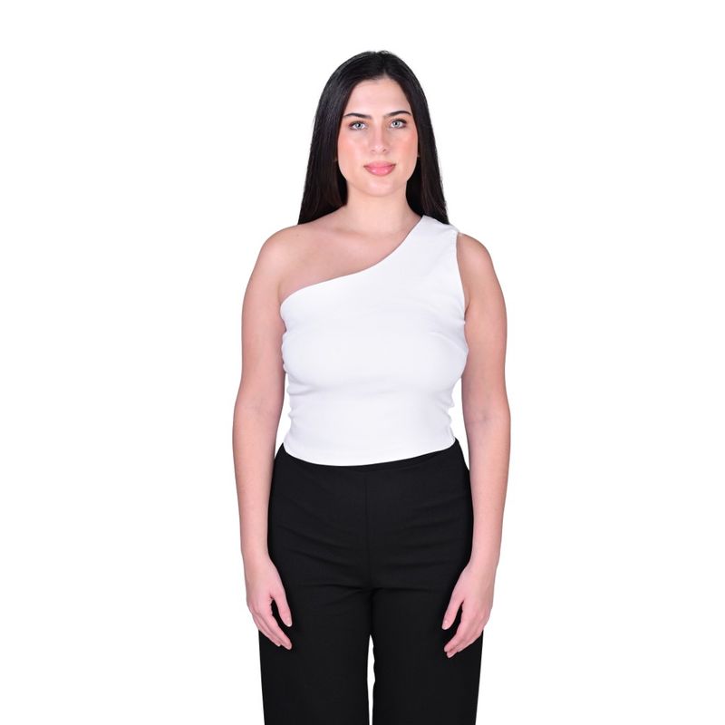 El Top Asimétrico Un Hombro Zenutty Blanco Mujer Tiare es una prenda moderna y sofisticada, perfecta para destacar en cualquier ocasión. Su diseño de un solo hombro y escote recto crea un look elegante y llamativo, dejando un brazo al descubierto y cubriendo el otro con una tira ancha. El corte ajustado resalta la silueta, mientras que el tejido elástico se adapta cómodamente al cuerpo, ofreciendo libertad de movimiento sin perder la forma.