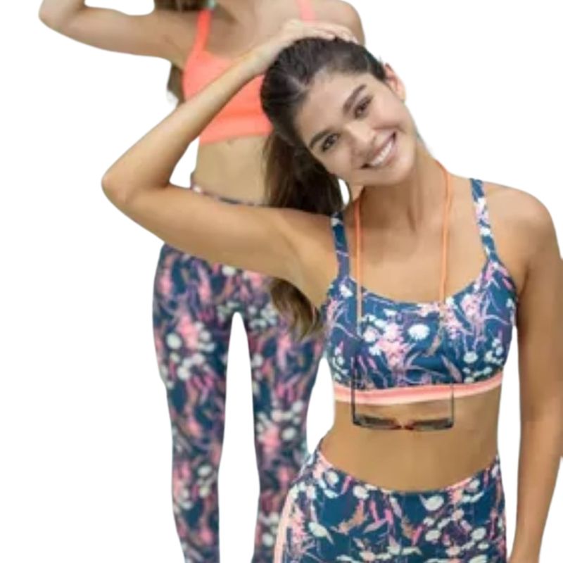 Top full estampado, tirantas fijas silueta ajustada, banda elástica expuesta en base de busto para un ajuste perfecto, tejido suave y ligero, mantiene su forma brindándote mayor movimiento y flexibilidad, absorbe el sudor manteniéndote fresca