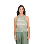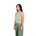 Este top con cuello estilo Heather se destaca por su estampado de rayas en verde agua, aportando frescura y un toque moderno a cualquier look. Su diseño cómodo y versátil lo hace ideal para combinar en outfits casuales, urbanos o relajados, brindando un estilo femenino y actual.