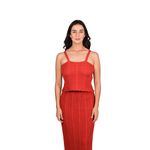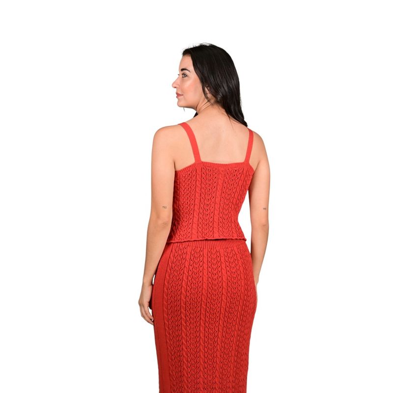 Top de tirantes de estilo boho, ajustado al cuerpo, que combina elegancia y frescura. Su tejido de punto trenzado aporta textura y detalle artesanal, mientras que el volante en el bajo le da un toque femenino y delicado. Ideal para quienes buscan un look moderno, versátil y llamativo.
