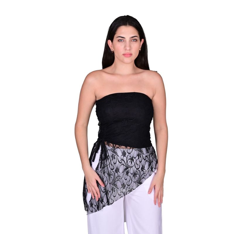 El Top Strapless De Tull Negro Mujer Tiare es una prenda elegante y femenina, diseñada para realzar la silueta con un corte ajustado y moderno estilo strapless, ideal para quienes buscan un look sofisticado y versátil.