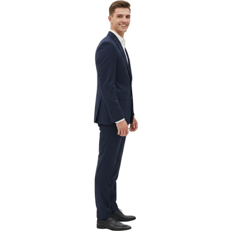 Traje de corte Slim, confeccionado con tejido dobby que aporta textura y sofisticación al diseño. Su ajuste moderno realza la silueta, ofreciendo un look elegante y contemporáneo ideal para eventos formales, reuniones de trabajo y ocasiones especiales donde se busca un estilo distinguido.