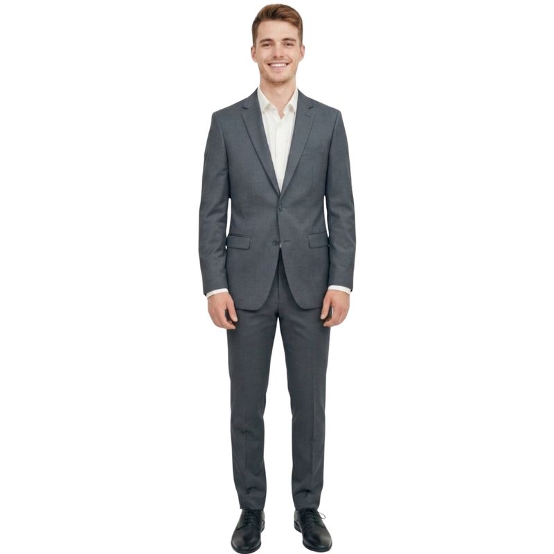 Traje de corte Regular, clásico y elegante, ideal para quienes buscan un look sofisticado y moderno. Su diseño liso en gris oscuro aporta versatilidad, siendo adecuado tanto para eventos formales como para reuniones de trabajo o celebraciones especiales.