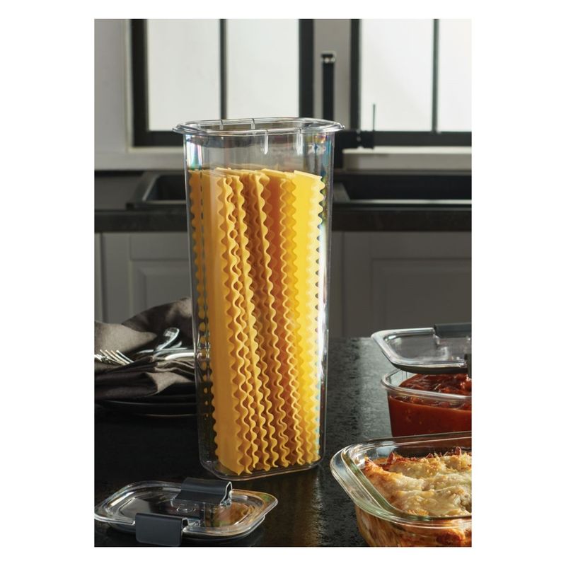 Los recipientes modulares para almacenamiento de alimentos Rubbermaid pueden contener pasta, ingredientes para hornear u otros alimentos básicos de la despensa; ahorre espacio y mantenga la despensa organizada.