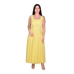 Este vestido largo combina elegancia y frescura, ideal para eventos sociales, celebraciones o reuniones formales. Su diseño sin mangas permite libertad de movimiento y un estilo moderno, mientras que el escote redondo aporta un acabado clásico y femenino. La prenda destaca por su delicadeza y sofisticación, perfecta para ocasiones especiales.