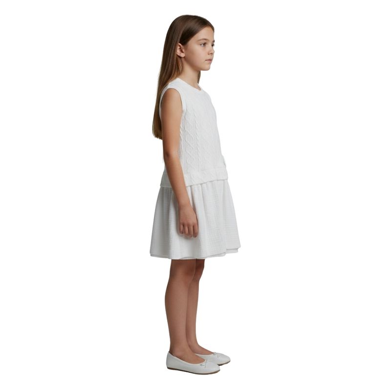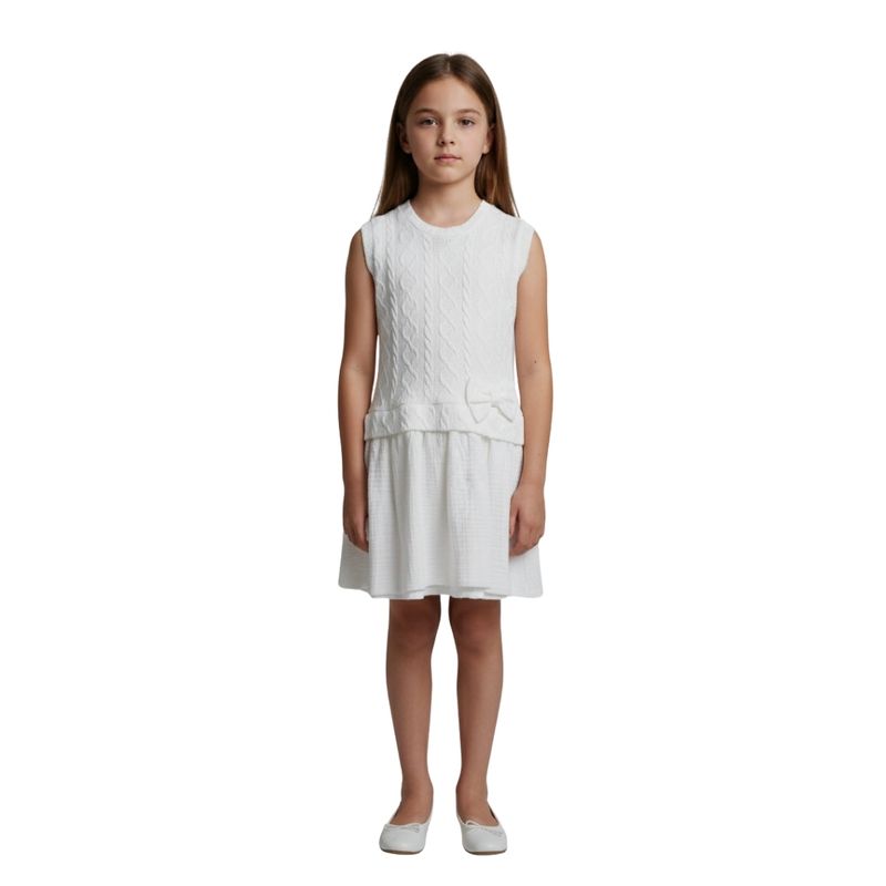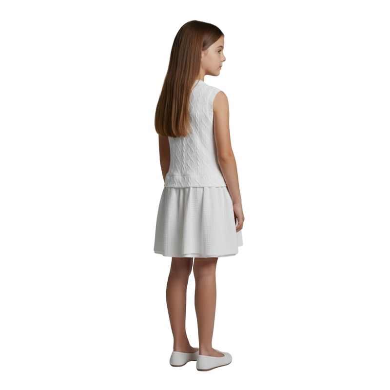 Este vestido combina sencillez y elegancia, ideal para ocasiones especiales o eventos familiares. Su diseño clásico permite libertad de movimiento, ofreciendo comodidad sin sacrificar el estilo. El color blanco aporta frescura y versatilidad, siendo fácil de combinar con diferentes accesorios.