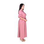 Este vestido camisero de corte largo ofrece una silueta fluida y elegante, ideal para mujeres que buscan comodidad sin perder sofisticación. La prenda de una sola pieza combina funcionalidad y estilo, adaptándose tanto a looks casuales como a conjuntos más formales.