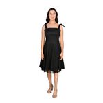 Este vestido corto de tafetán de Juliette combina elegancia, estilo juvenil y un toque romántico. Su corte A/skater proporciona un ajuste favorecedor en la cintura y una falda con vuelo que genera movimiento y fluidez al caminar. El escote cuadrado aporta un detalle sofisticado y moderno, mientras que los tirantes anchos con lazos ajustables permiten un look femenino y personalizable. El borde visible de tul en el bajo añade textura, contraste y delicadeza, destacando el diseño y dando un toque único al vestido.