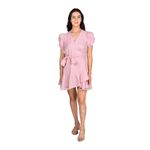 Presenta un escote en V que aporta un toque elegante y estiliza visualmente el cuello. Las mangas cortas abullonadas añaden volumen en la parte superior, equilibrando la figura con un acabado romántico y moderno.