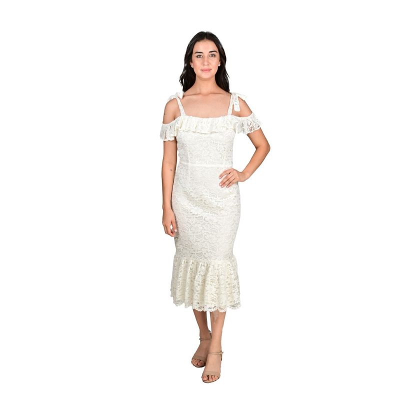 Este vestido en encaje solera es la elección perfecta para quienes buscan un look femenino, elegante y sofisticado. Su corte fluido y ajustado en la parte superior realza la figura, mientras que la caída de la falda aporta movimiento y ligereza. El encaje detallado en todo el vestido ofrece un toque de delicadeza y distinción, convirtiéndolo en una opción ideal para eventos sociales, cenas formales, bodas o celebraciones especiales.