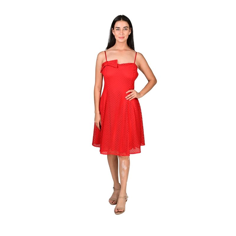 Este vestido rojo en red de L'Exclusif es una prenda moderna y elegante, perfecta para quienes buscan un look femenino con un toque distintivo. Su diseño incluye un nudo lateral en el costado derecho, que realza la silueta y aporta un detalle sofisticado y original.