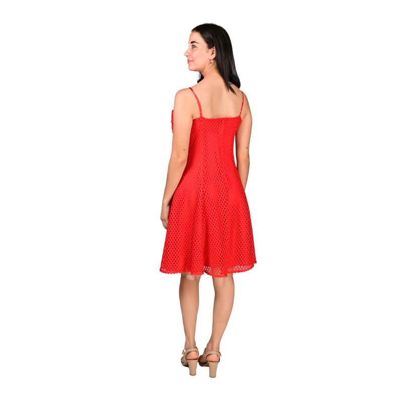 La caída del vestido es fluida, ofreciendo comodidad y libertad de movimiento, mientras que la textura en red le brinda un acabado refinado y visualmente atractivo. Su diseño versátil permite adaptarlo a distintos estilos y ocasiones.
