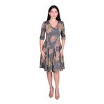 Este vestido estampado sport de L'exclusif es una prenda femenina y fresca que resalta por su diseño moderno con inspiración floral. De largo hasta la rodilla, combina un escote en V con mangas tres cuartos, aportando un equilibrio ideal entre comodidad y elegancia. El corte ajustado en pecho y cintura estiliza la figura, mientras que la falda acampanada otorga movimiento y ligereza.
