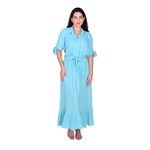 El Vestido Estilo Camisero Manga Corta Agua Marina Mujer L’exclusif combina elegancia y comodidad en una prenda versátil ideal para múltiples ocasiones. Su corte largo maxi y el diseño tipo camisero con cuello de solapa brindan un estilo clásico y sofisticado, mientras que el cierre frontal de botones permite un ajuste cómodo y práctico.