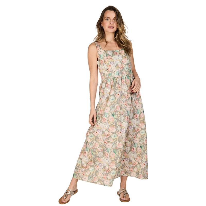 Confeccionado en un material resistente y duradero, el vestido tiene una textura ligera y con caída, que aporta frescura y movimiento natural a la prenda.