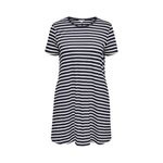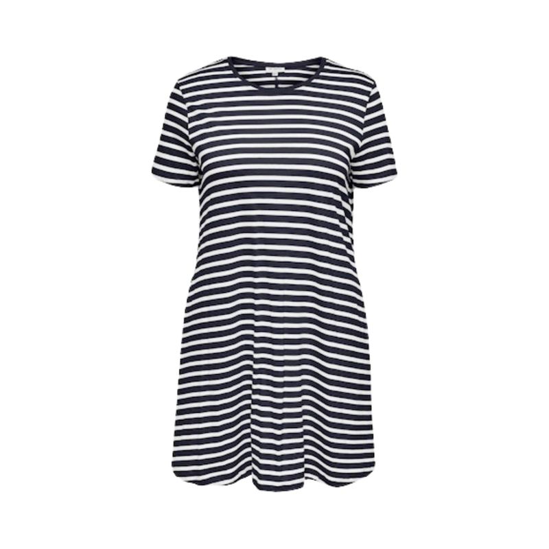 El vestido Carmay Life de Only Carmakoma combina elegancia y funcionalidad en una prenda versátil ideal para el uso diario o eventos casuales. Su diseño de manga corta y estampado de rayas clásicas en azul oscuro aporta un estilo atemporal que realza cualquier silueta, especialmente pensado para mujeres con curvas. El corte relajado y los prácticos bolsillos laterales lo convierten en una opción cómoda y práctica sin perder el toque moderno.