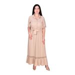 El Vestido Manga Corta Con Galones Lino Beige Mujer L'exclusif es una prenda elegante y sofisticada que combina detalles femeninos con un estilo cómodo y versátil. La parte superior presenta un corte camisero, con cuello tipo solapa y una hilera de botones que recorre el frente, aportando un toque clásico y refinado.