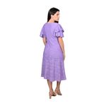 Para ocasiones más formales, podés usar tacones o sandalias finas, complementando con accesorios dorados o neutros que resalten el color lila.
