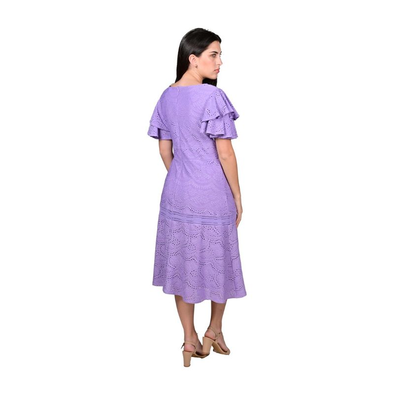 El Vestido Manga Corta En Broderie Con Algodón Lila Mujer L'exclusif combina delicadeza, elegancia y frescura en un diseño pensado para la mujer actual. Su corte midi, que llega hasta la pantorrilla, ofrece un equilibrio perfecto entre comodidad y estilo, permitiendo libertad de movimiento y una caída fluida que realza la silueta femenina.