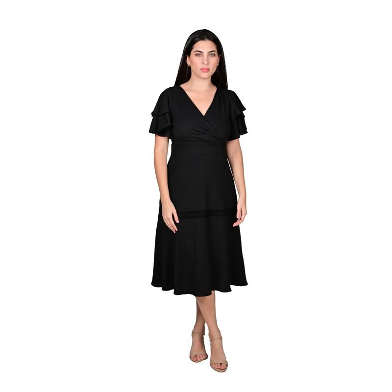 Perfecto para almuerzos, cenas, eventos sociales, reuniones familiares o salidas especiales, el Vestido Manga Corta En Yoyo Con Galones Negro Mujer L’Exclusif ofrece una combinación de comodidad, estilo y sofisticación.