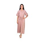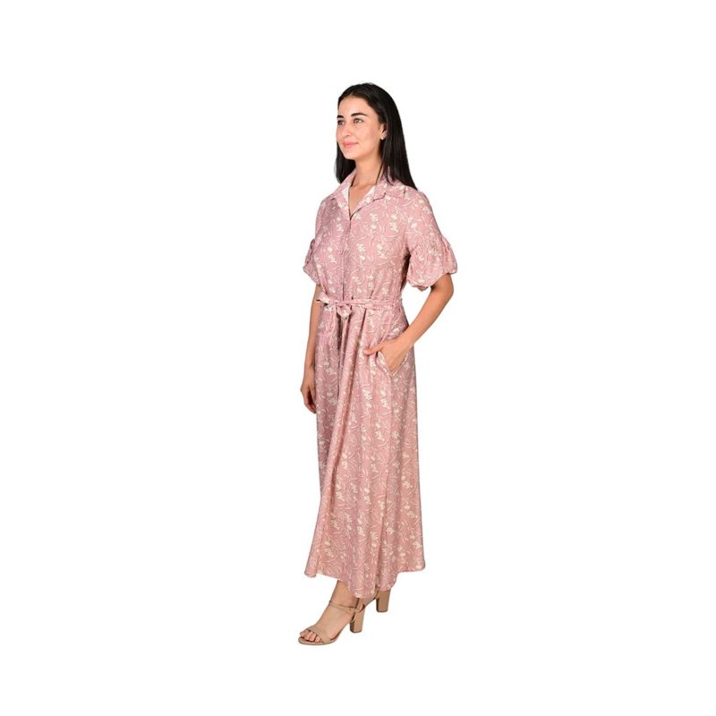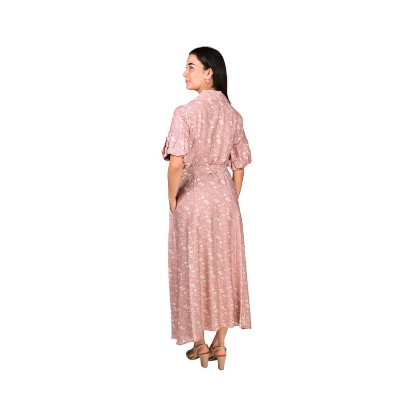 Este vestido manga corta de L'Exclusif combina elegancia y frescura gracias a su estampado de flores en tonos rosa. Su diseño camisero con lazo en la cintura permite ajustar la prenda al cuerpo, resaltando la figura de manera delicada y femenina. La silueta ligera y fluida asegura comodidad durante todo el día, ideal para actividades diurnas o eventos informales.