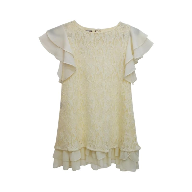 Vestido Manga Corta Trapecio Con Encajes Marfil Niña Tiare Girl