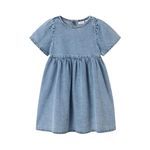 Este vestido de mangas cortas para niña combina elegancia y comodidad en un solo diseño. Confeccionado en denim celeste, ofrece un look moderno y versátil, ideal para cualquier temporada. Su detalle plisado en la parte delantera añade un toque sofisticado, mientras que el cuello en U brinda libertad de movimiento y comodidad durante todo el día. Perfecto para eventos familiares, salidas escolares o momentos casuales en el día a día.