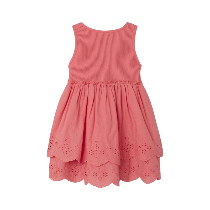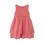Renová el armario de tu peque con este precioso vestido sin mangas, pensado para brindar comodidad y un estilo clásico con toques modernos. Su color coral aporta un look alegre y versátil, mientras que el broderie y el tejido de punto acanalado con rayas verticales generan un diseño elegante y delicado. El cuello redondo y la cintura elástica aseguran un ajuste cómodo y práctico, ideal para cualquier temporada y ocasión, desde paseos diarios hasta eventos especiales.