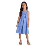 Moño frontal grande en el pecho, confeccionado con la misma tela del vestido, aportando un look elegante y delicado.