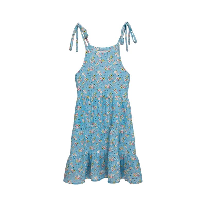 Este vestido solera para niña combina frescura, delicadeza y un diseño encantador, ideal para el día a día y ocasiones especiales. Su estampado floral multicolor aporta alegría y un toque primaveral, mientras que su corte ligero y fluido garantiza comodidad y libertad de movimiento. El escote cuadrado y los tirantes finos que se anudan en el hombro permiten un ajuste personalizado, añadiendo un detalle coqueto y adaptable. La cintura fruncida/elástica asegura un calce cómodo, mientras que la falda con volantes escalonados de dos niveles aporta dinamismo y un estilo elegante sin perder ligereza.