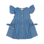 El Vestido Trapecio Essence Azul Jeans para bebé niña de Ficcus combina comodidad y estilo en un diseño urbano y delicado. Su corte trapecio proporciona libertad de movimiento y un look moderno, mientras que la falda fruncida añade un toque de volumen y suavidad. Las mangas cortas presentan volantes fruncidos que aportan un detalle femenino, y el escote redondo mantiene la comodidad en todo momento. Incluye dos bolsillos de parche laterales decorativos con lazo, ideales para un toque lúdico y práctico.