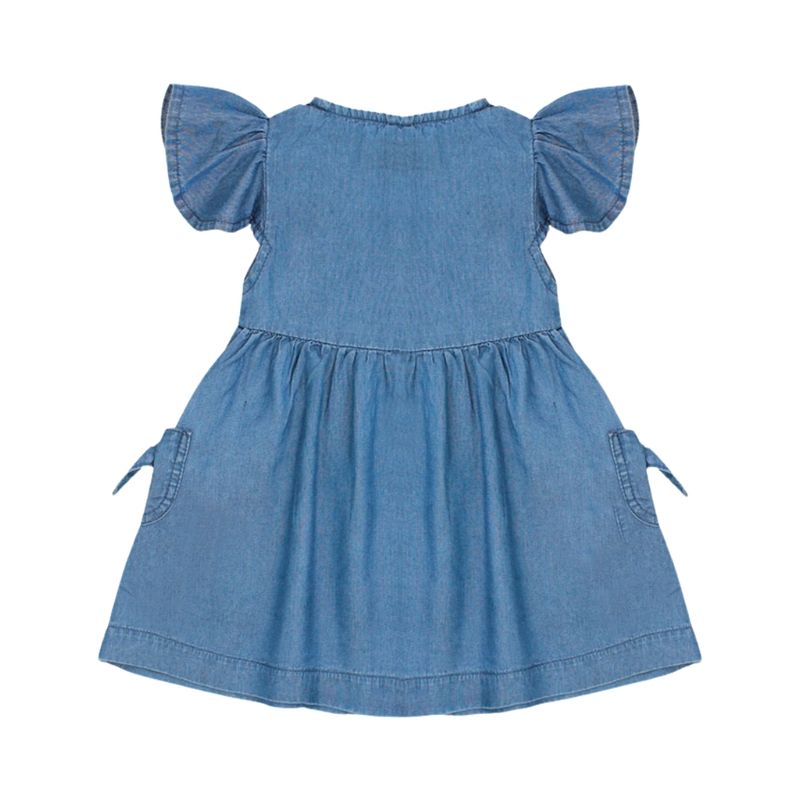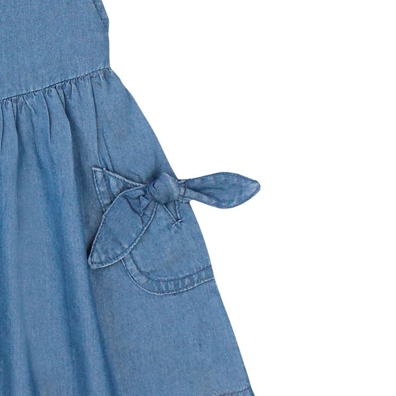 Confeccionado en 86% algodón y 14% lyocell, este vestido es suave, transpirable y resistente, ideal para la piel sensible de los bebés. Su tejido plano asegura durabilidad y confort durante todo el día.
