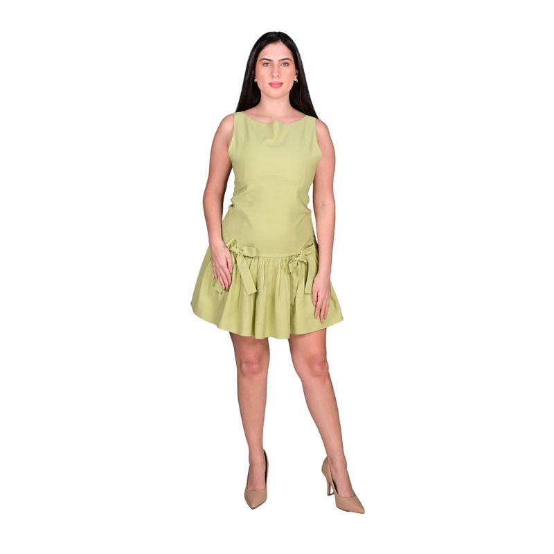 Este vestido corto combina elegancia y frescura, ideal para celebraciones, eventos navideños o reuniones informales. Su diseño sin mangas permite libertad de movimiento y un look moderno, mientras que el cuello redondo aporta un acabado clásico y femenino. La parte superior del vestido tiene un corte ajustado que resalta la silueta de manera delicada y elegante.