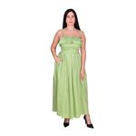 Confeccionado en algodón satinado duradero y resistente, que garantiza suavidad al tacto, frescura y comodidad durante todo el día. La calidad de la tela asegura un acabado prolijo y elegante, con un brillo sutil característico del satinado que resalta el tono verde del vestido.
