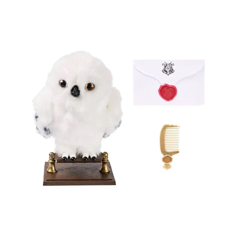 Con más de 15 sonidos y movimientos realistas, este peluche de búho cobra vida mágicamente. Interactúa con Hedwig acariciando sus suaves plumas: ella responde con cariñosos gorjeos y movimientos de cabeza. Coloca tu dedo en su pico para que juegue a mordisquearlo cuando esté feliz.