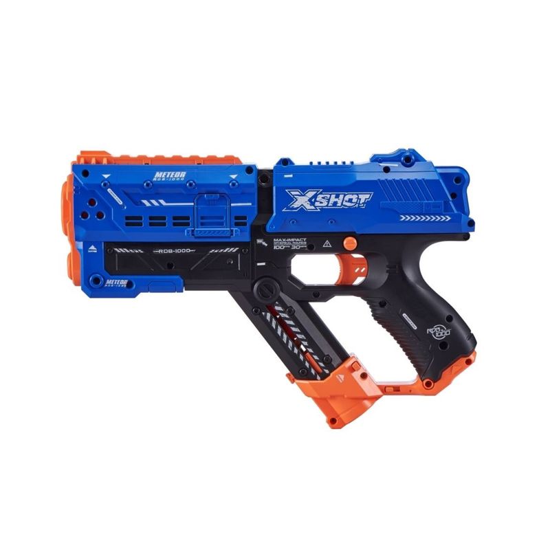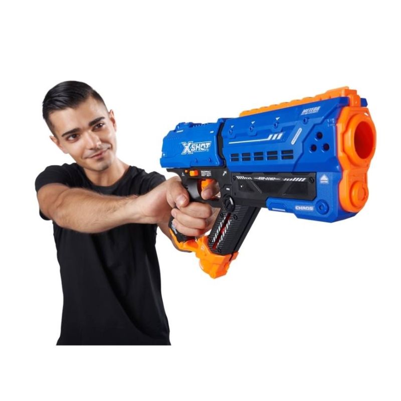 *X-SHOT CHAOS METEOR C/ 12 BALINES* La gama Chaos trae calidad X-Shot y valor ahora con blásters redondos. Máximo rendimiento y precisión. Máximo rendimiento y precisión. Capacidad de 6 rondas, dispara hasta a 30mts de distancia. Mecanismo de carga fácil. Mira de precisión. Almacenamiento visible.