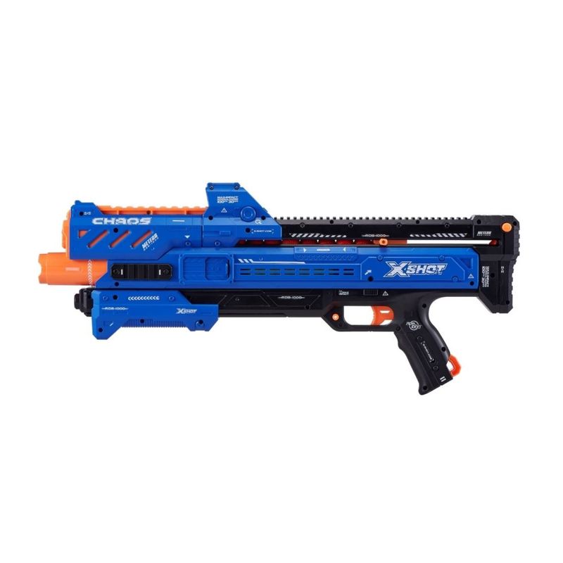 *X-SHOT CHAOS ORBIT C/ 24 BALINES* La gama Chaos trae calidad X-Shot y valor ahora con blásters redondos. Máximo rendimiento y precisión. Capacidad de 14 rondas, dispara hasta a 30mts de distancia. Mecanismo de carga fácil. Mira de precisión. Almacenamiento visible.