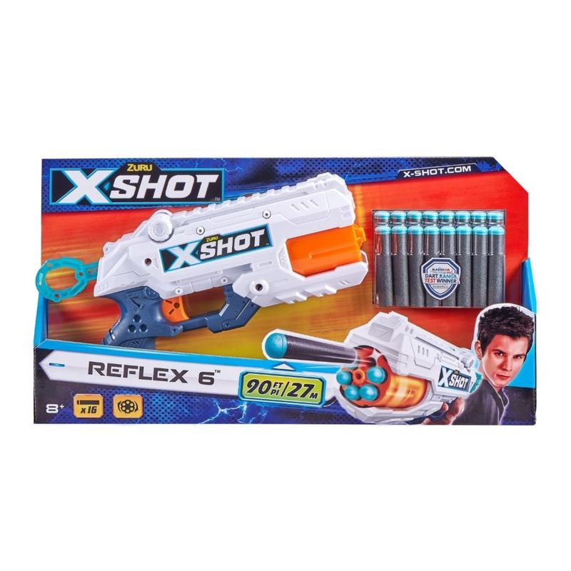 Para detonar sin dudar, el Reflex 6 carga 6 dardos en un barril giratorio y puede disparar todo en 30 segundos. ¡La velocidad y la frecuencia hacen que este blaster sea imparable! Prepara, bloquea y carga antes de disparar sus dardos de espuma a más de 27 m. El juego incluye 2 x detonadores Reflex, 3 latas de práctica y 8 dardos de espuma.