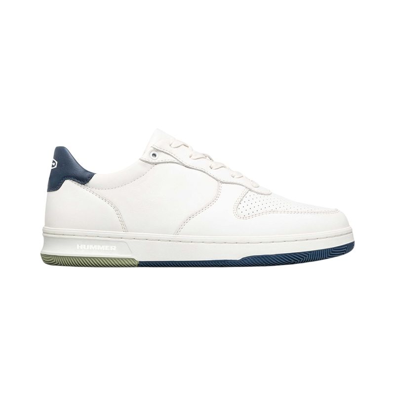 El Zapatenis Simil Blanco/Azul Hombre Hummer combina estilo casual y confort en un calzado de corte bajo, ideal para uso diario y actividades urbanas. Su diseño minimalista y moderno presenta un color blanco predominante, con detalles en azul marino oscuro en la lengüeta del talón y en la parte frontal de la suela exterior, aportando contraste y sofisticación. La sección trasera de la suela en verde oliva con el nombre HUMMER en relieve refuerza la identidad de la marca y añade un detalle distintivo.