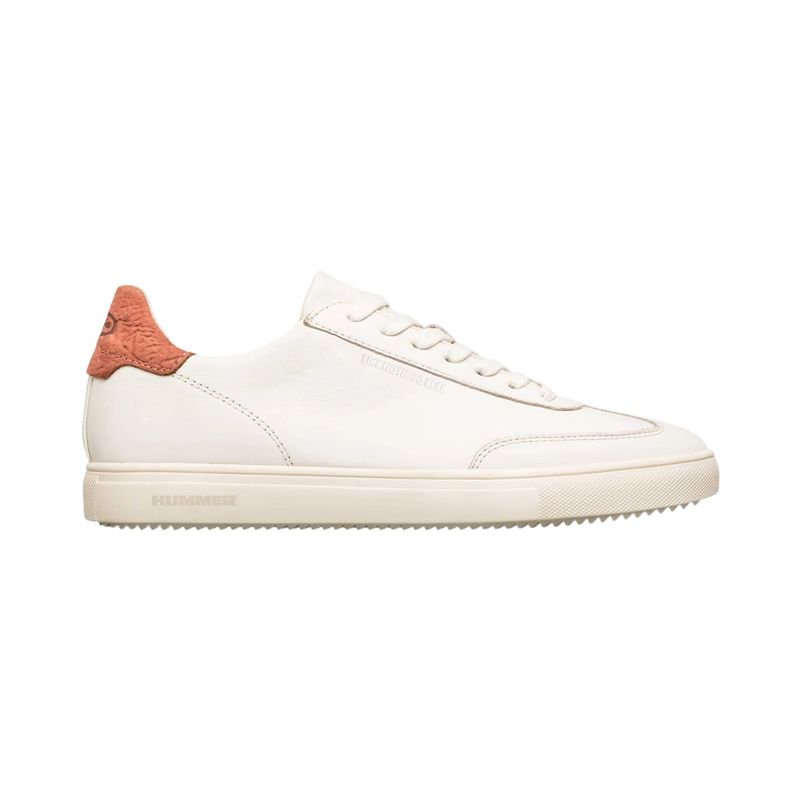 Fabricado con materiales duraderos y resistentes, este zapatenis ofrece confort y soporte para largas jornadas. La suela plana y delgada de color crema, con patrón dentado sutil en el borde, proporciona estabilidad y tracción en distintas superficies. El nombre de HUMMER inscrito en el lateral de la suela refuerza la identidad de la marca y añade un detalle de calidad.