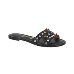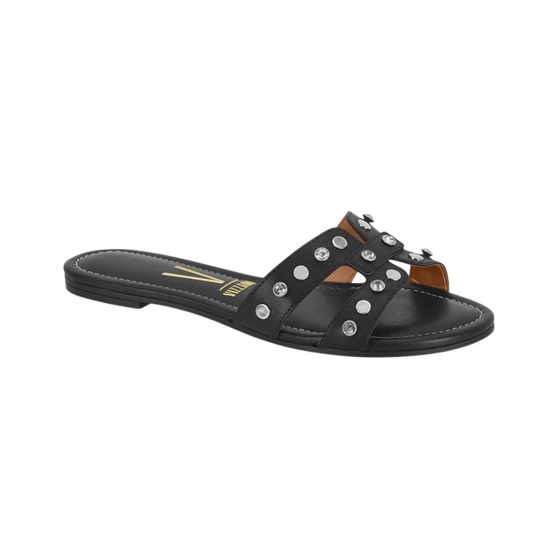 La Zapatilla Slide Tiras con Remaches Negro para Mujer de Vizzano es la opción perfecta para quienes buscan un calzado cómodo con estilo propio. Este modelo presenta un diseño plano tipo slide, con puntera abierta y redonda, ideal para climas cálidos y momentos de descanso. Las dos tiras anchas sobre el empeine están decoradas con remaches metálicos y tachuelas brillantes que aportan un detalle moderno y llamativo, sin perder la elegancia.